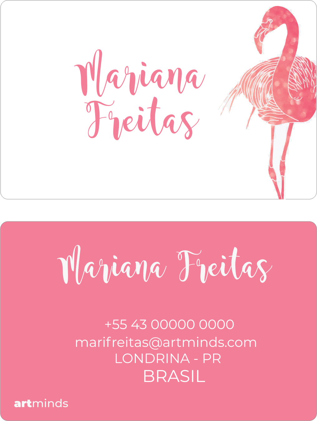 • Verso: nome, telefone, e-mail ou endereço, cidade e país (escolha as informações importantes para você, o uso de todas não é obrigatório)