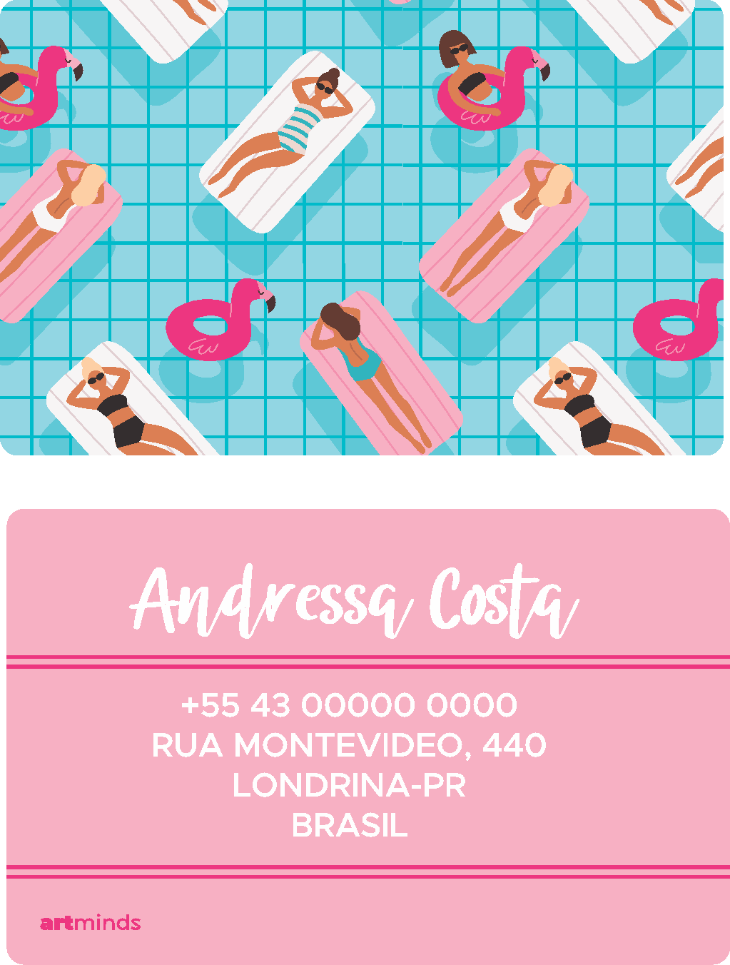 • Verso: nome, telefone, e-mail ou endereço, cidade e país (escolha as informações importantes para você, o uso de todas não é obrigatório)