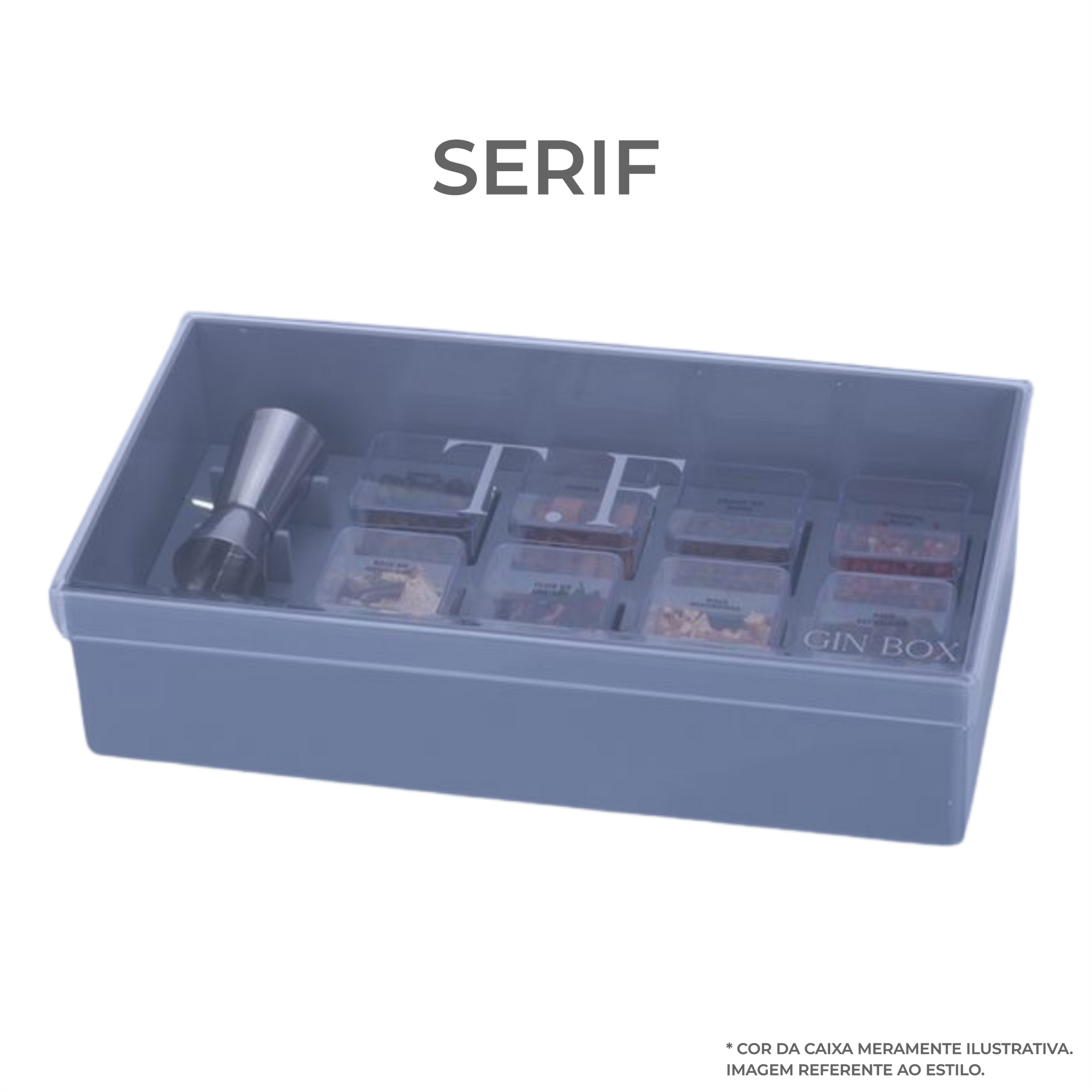 *Ginbox A Little Grey: sempre feita com o fundo cinza e tampa transparente.