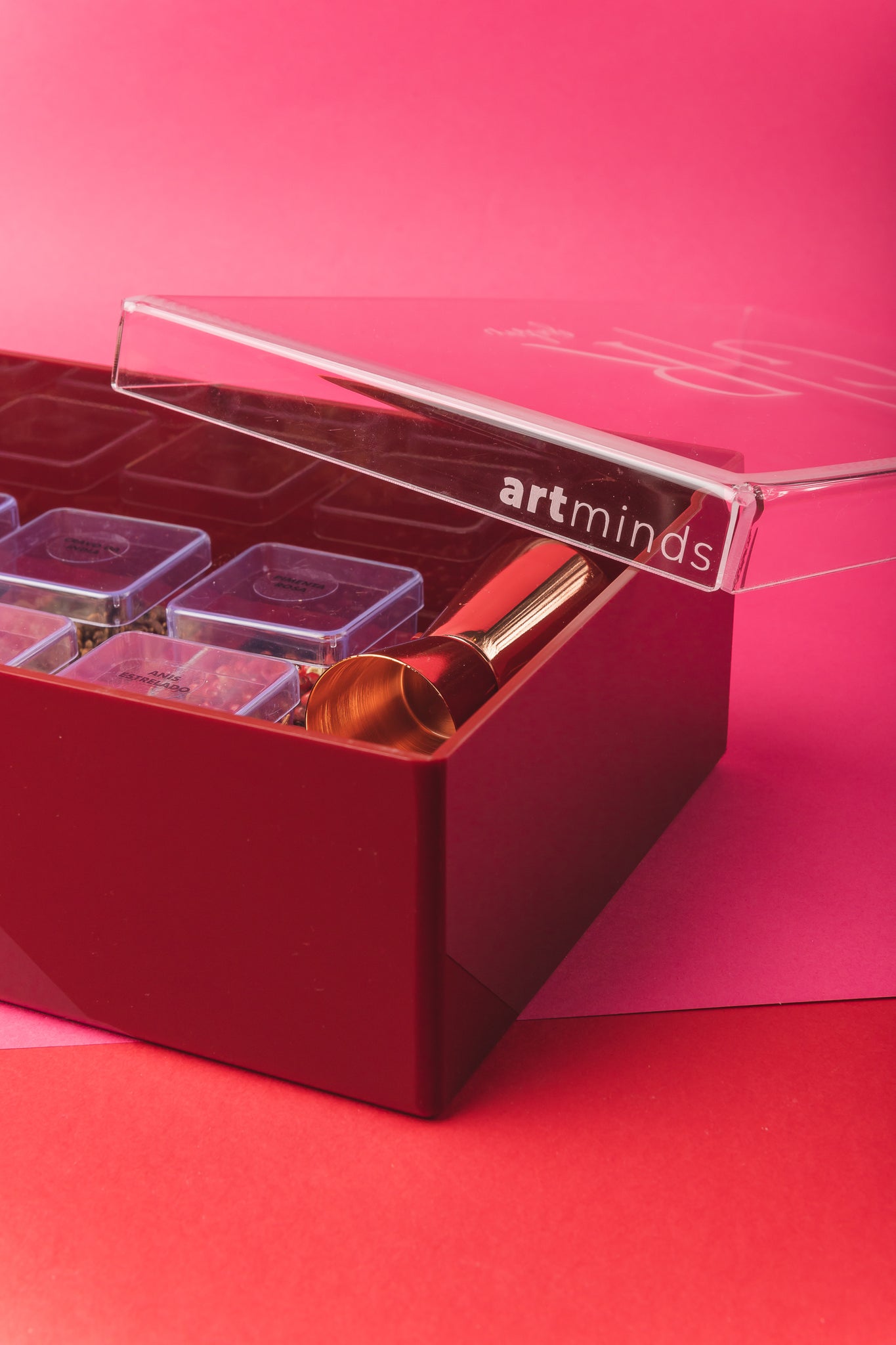 A Ginbox da artminds foi pensada para quem aprecia muito mais do que um simples gin tônica. Idealizada para os amantes dessa bebida, a Ginbox se faz completa em todos os sentidos. Produzida em acrílico, podendo ter suas inciais ou sobrenome jateadas na tampa, tornando-se única e exclusiva. Acompanha oito especiarias, uma colher bailarina e um dosador no material de sua escolha, tudo pensado para preparo desse drink que ganhou o coração de todos!
