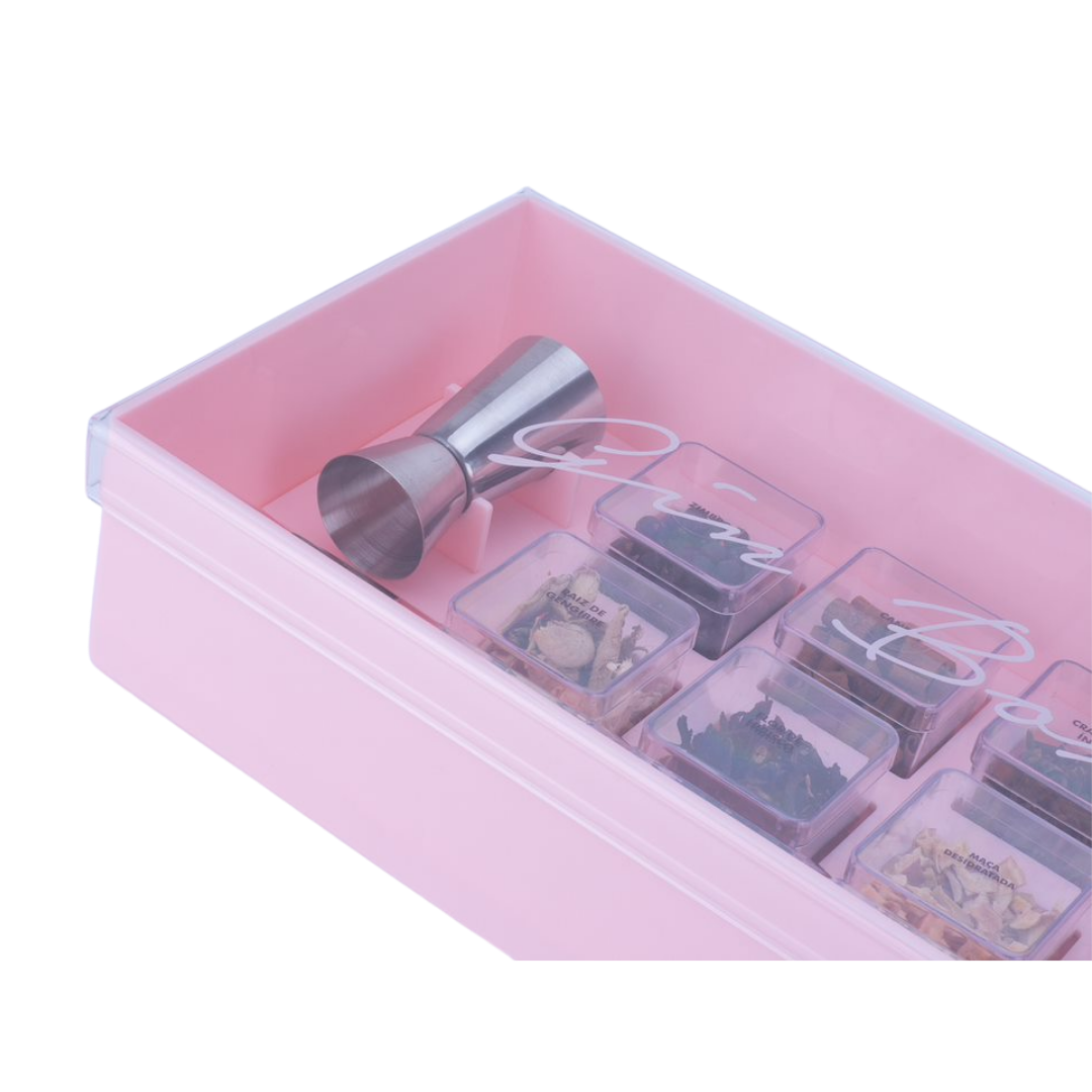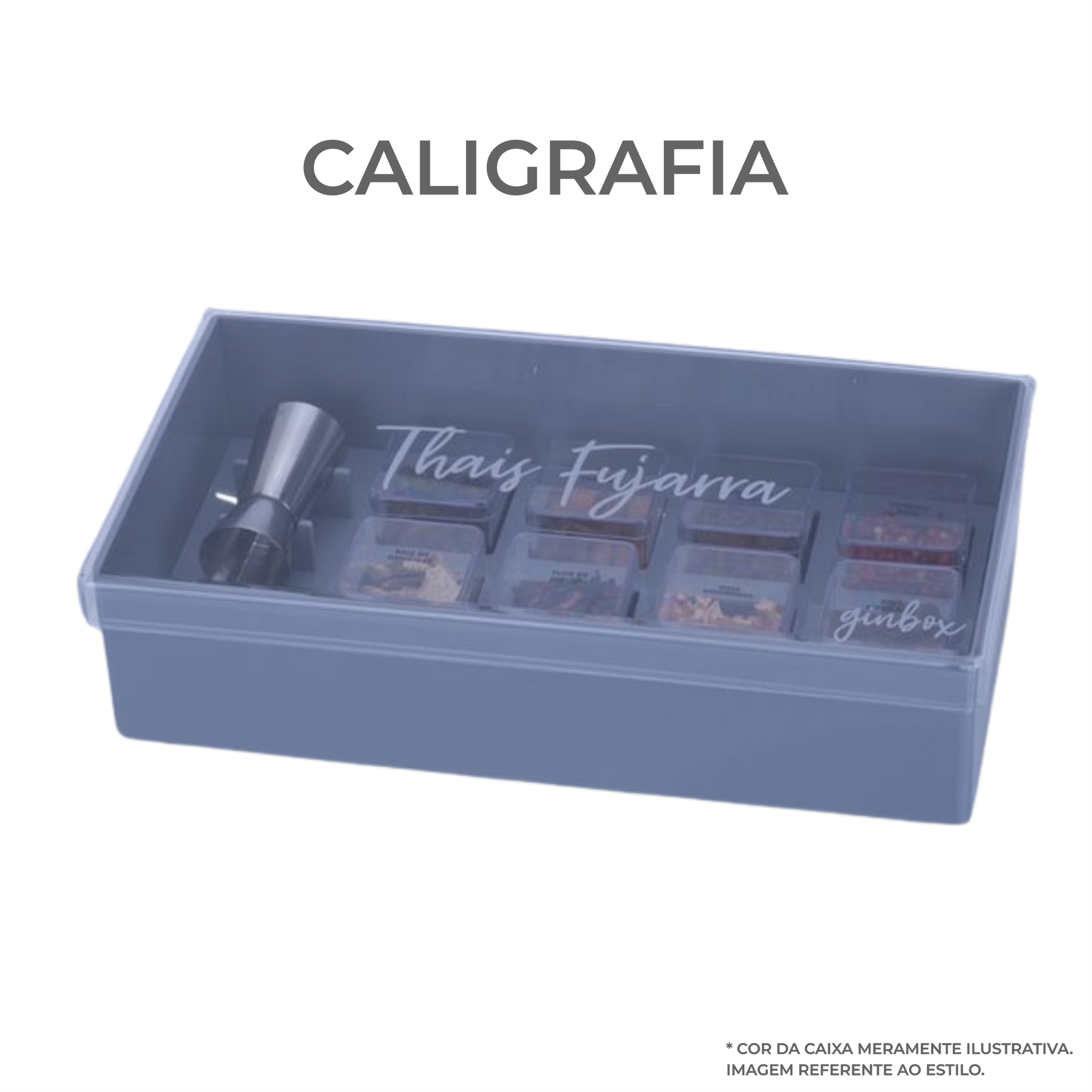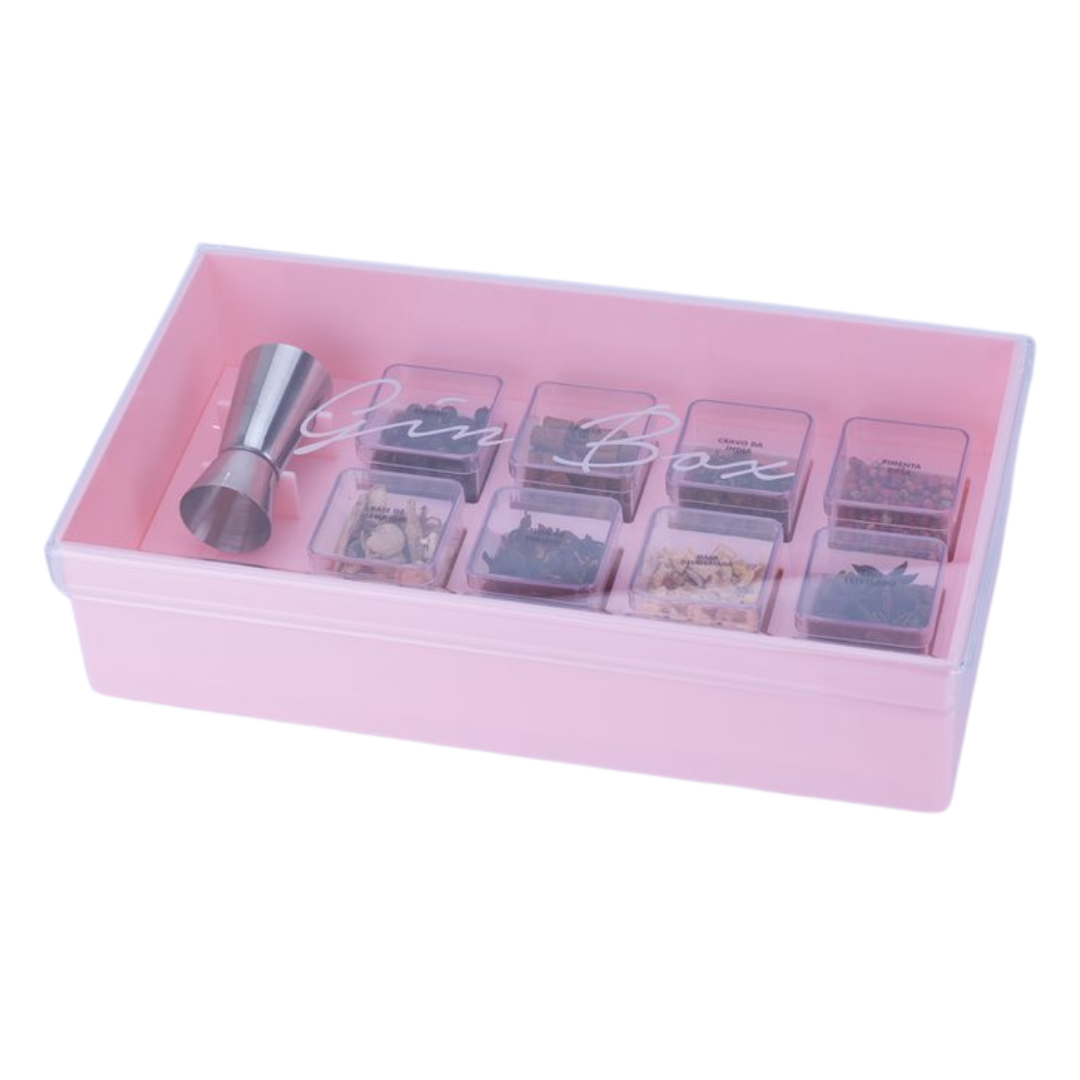 A Ginbox da artminds foi pensada para quem aprecia muito mais do que um simples gin tônica. Idealizada para os amantes dessa bebida, a Ginbox se faz completa em todos os sentidos. Produzida em acrílico, podendo ter suas inciais ou sobrenome jateadas na tampa, tornando-se única e exclusiva. Acompanha oito especiarias, uma colher bailarina e um dosador no material de sua escolha, tudo pensado para preparo desse drink que ganhou o coração de todos!