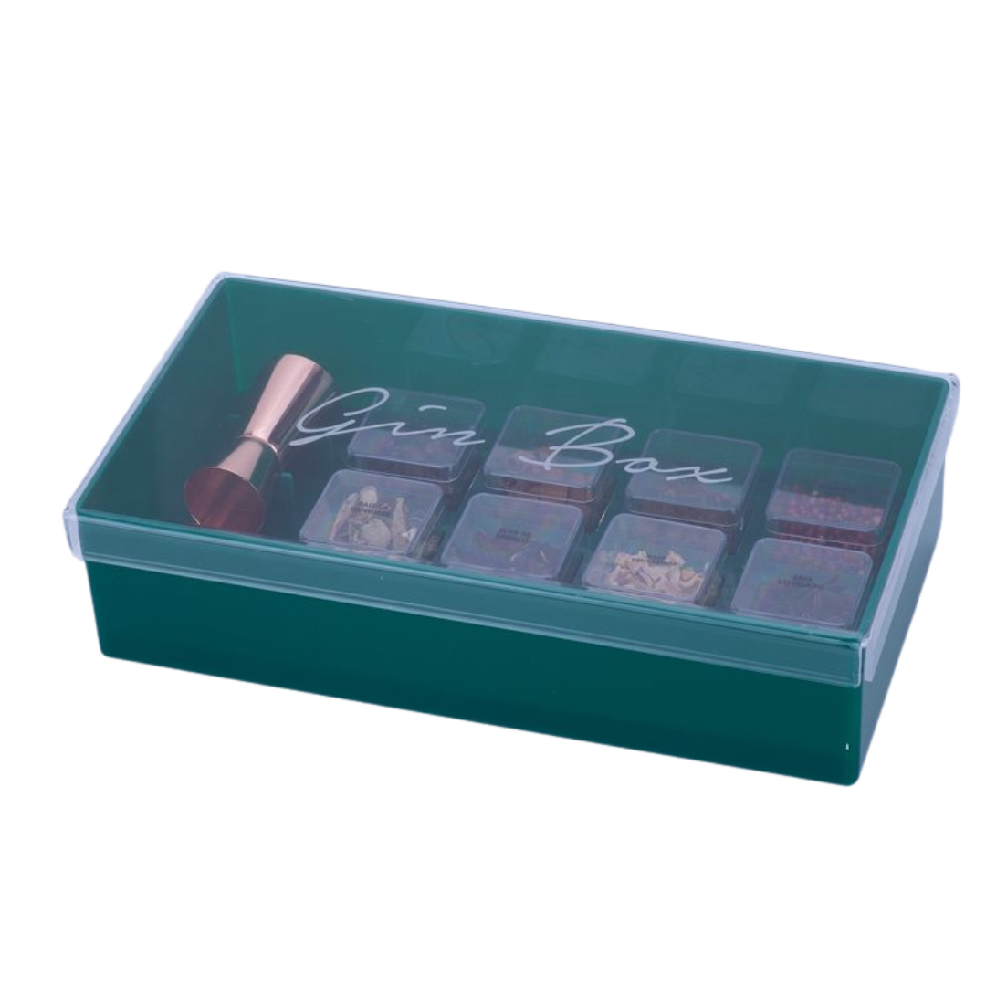 A Ginbox da artminds foi pensada para quem aprecia muito mais do que um simples gin tônica. Idealizada para os amantes dessa bebida, a Ginbox se faz completa em todos os sentidos. Produzida em acrílico, podendo ter suas inciais ou sobrenome jateadas na tampa, tornando-se única e exclusiva. Acompanha oito especiarias, uma colher bailarina e um dosador no material de sua escolha, tudo pensado para preparo desse drink que ganhou o coração de todos!