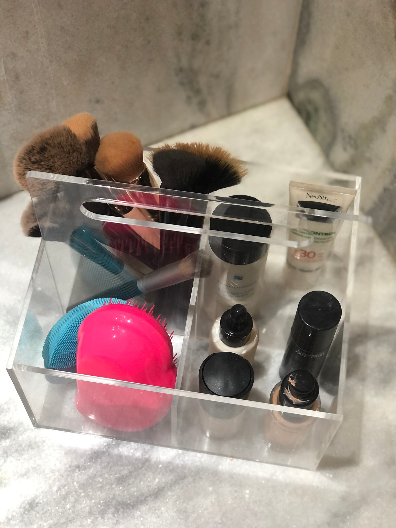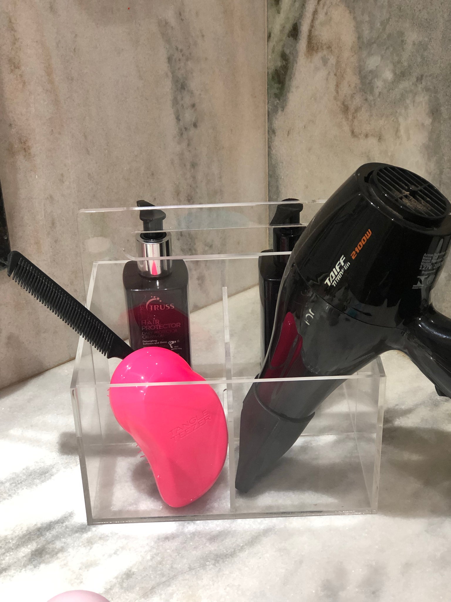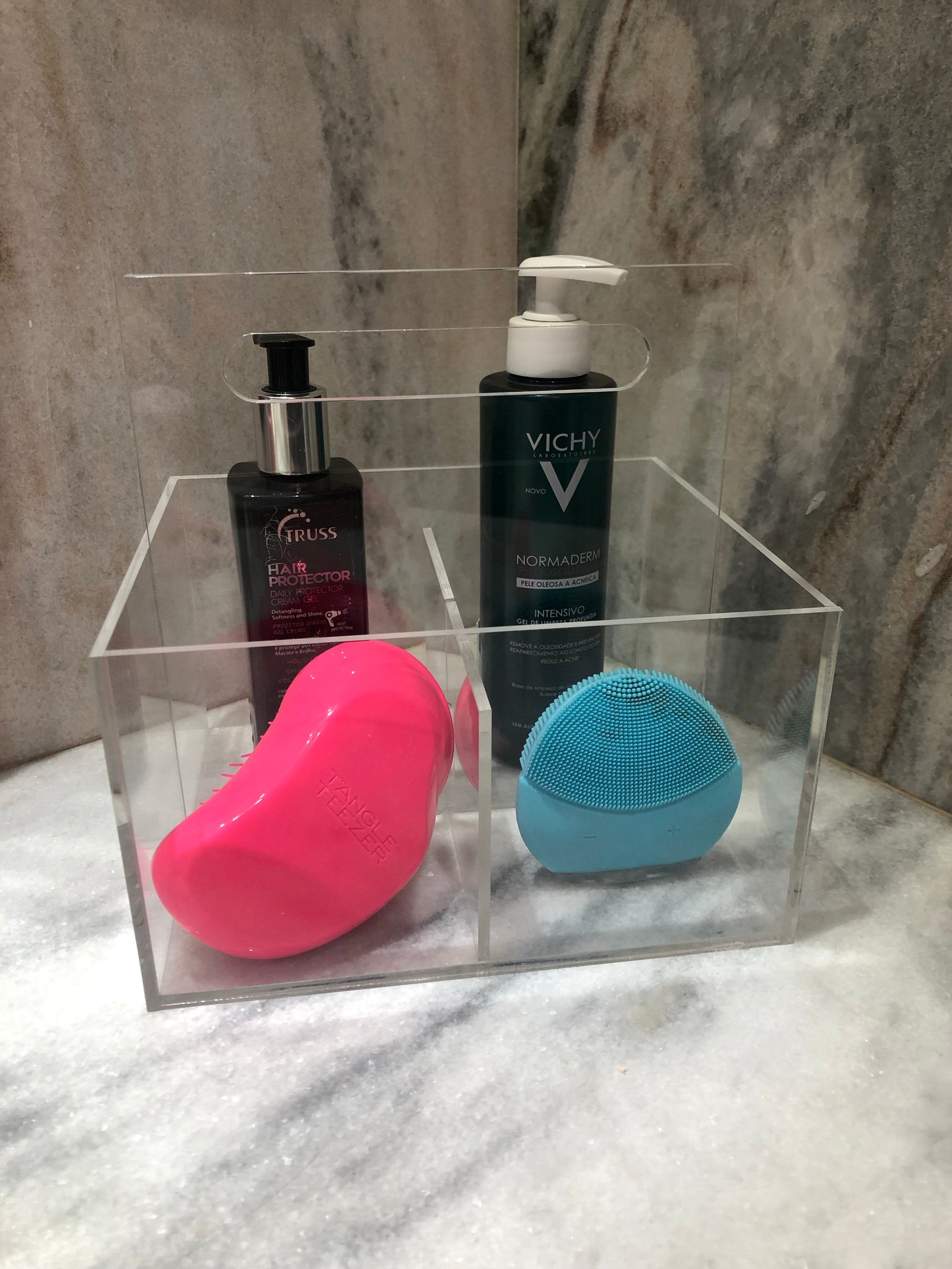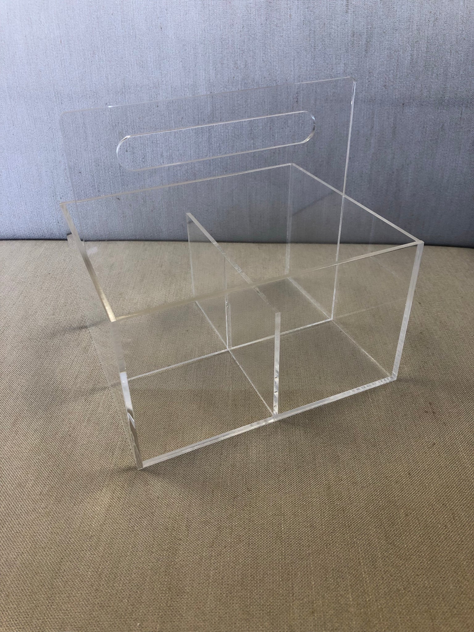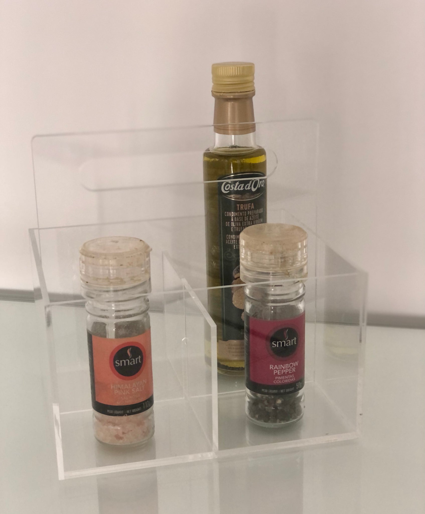 O Galheteiro da artminds foi elaborado em acrílico transparente para dar leveza ao produto, combinar com todos os acessórios que vão dentro e não brigar com sua decoração de mesa, jantar, cozinha e casa. O produto é tão versátil que pode ser utilizado como galheteiro, porta talheres e organizador do que sua imaginação quiser. O Galheteiro possui quatro divisórias do mesmo tamanho.