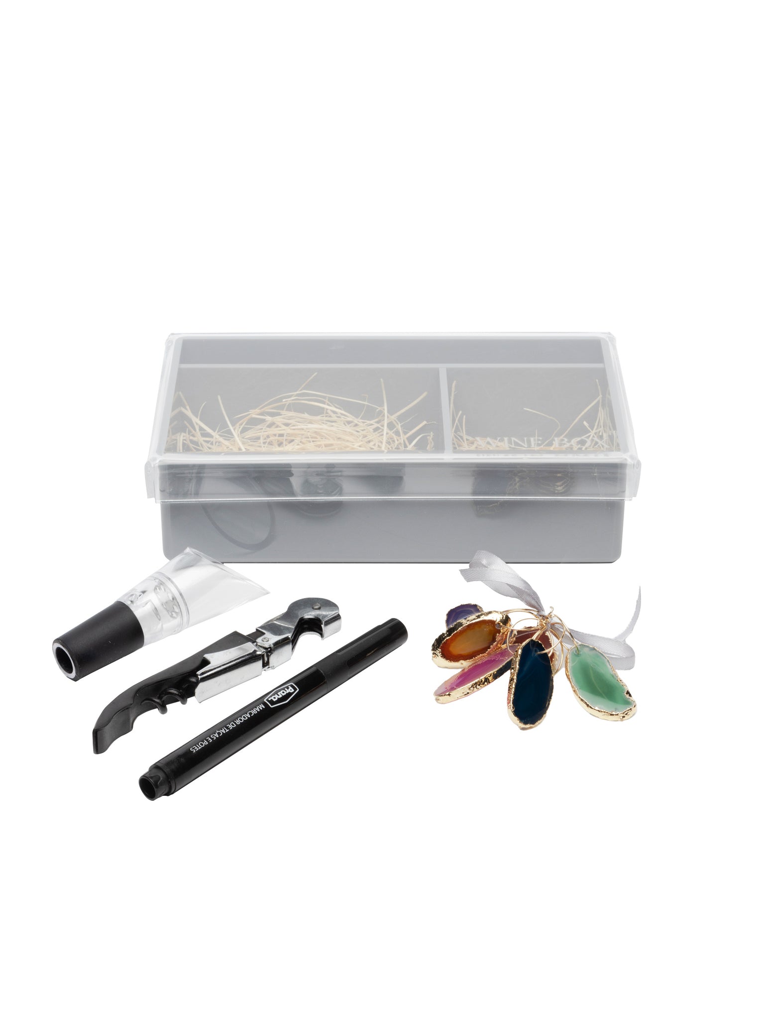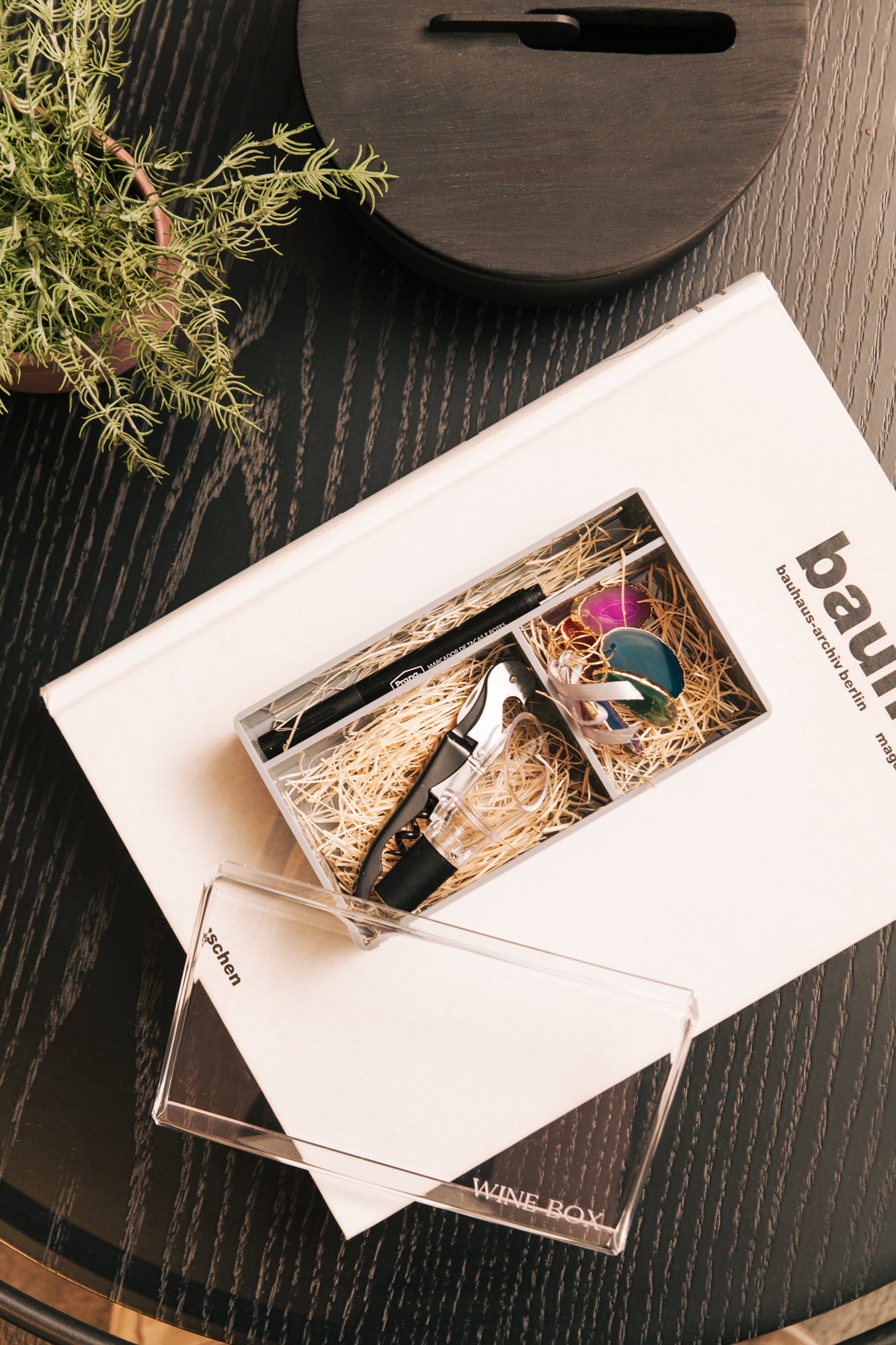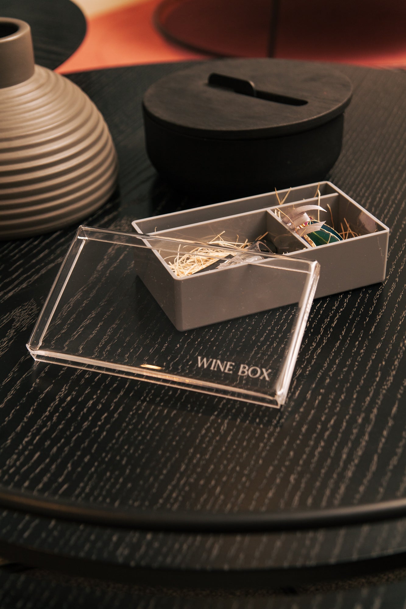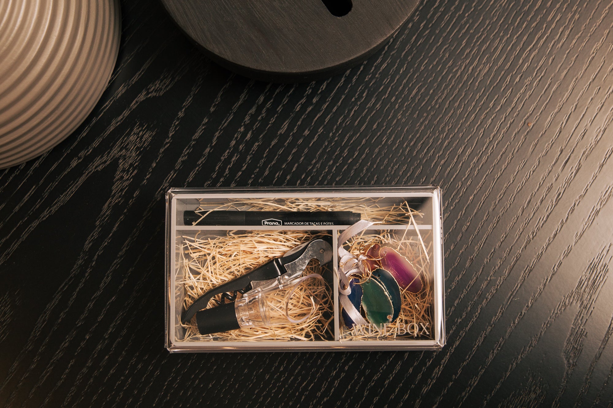 A Wine Box da artminds foi criada para aqueles que amam degustar um bom vinho em companhia de amigos e também uma ótima opção de presente. Produzida em acrílico preto e tampa transparente para expor todo o conteúdo da mesma.