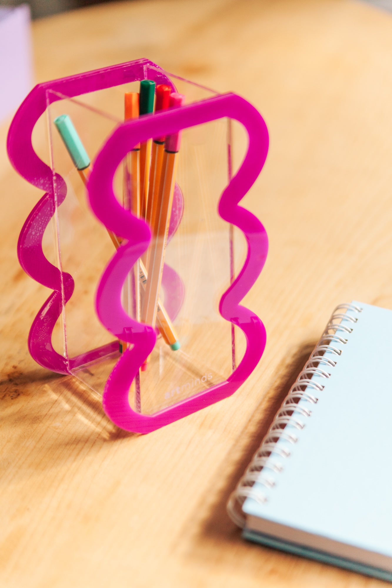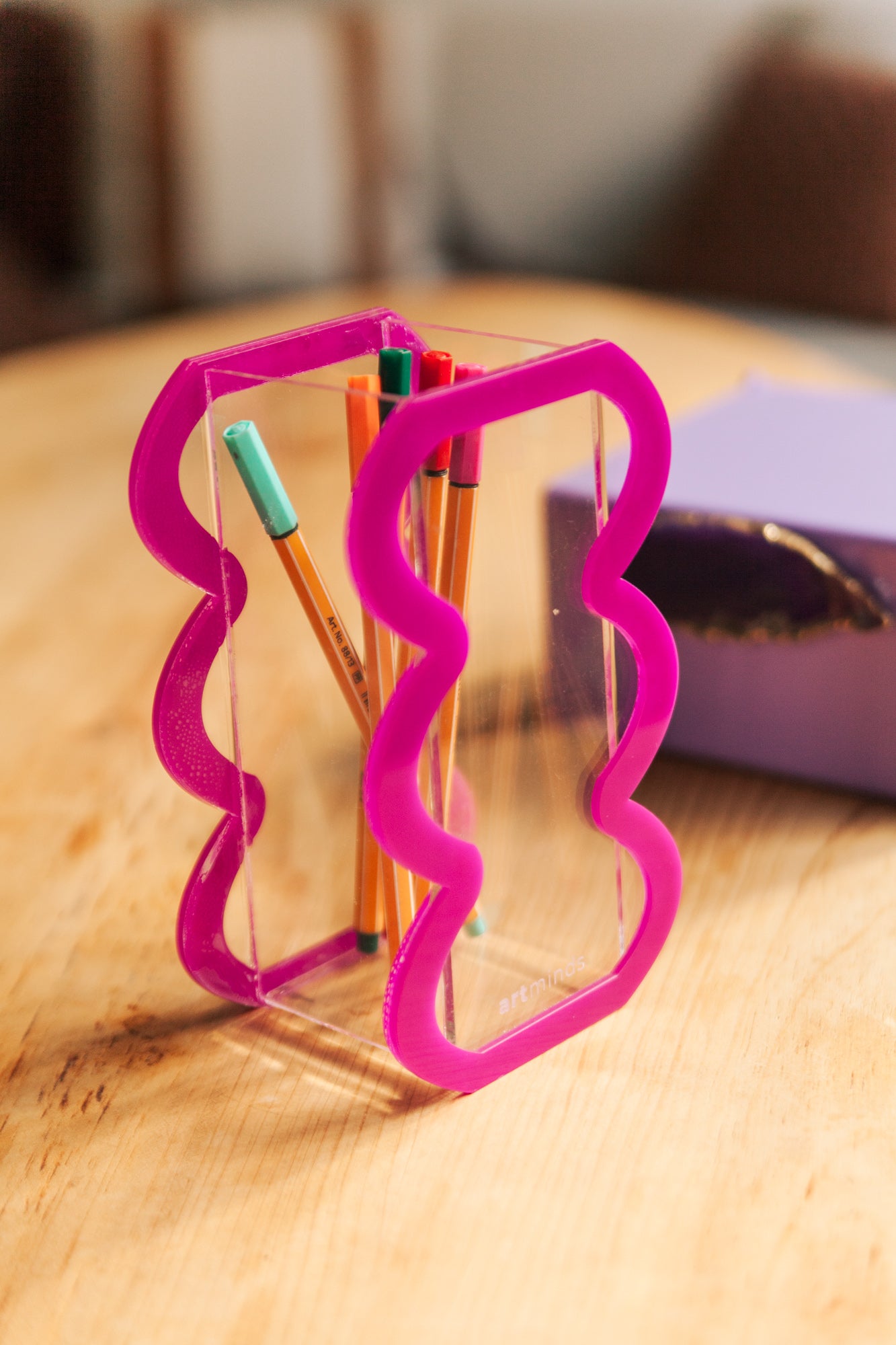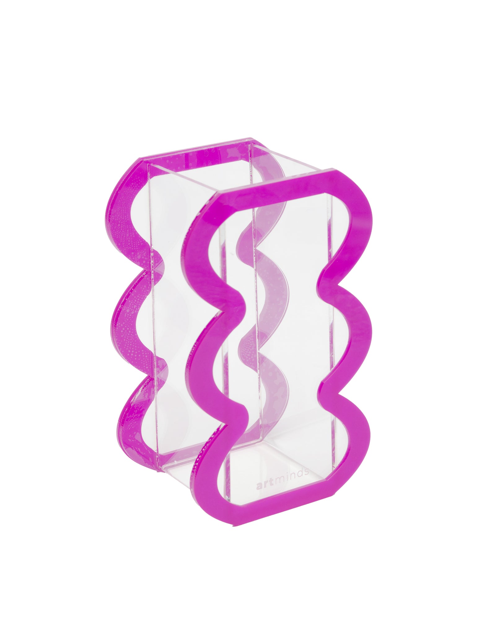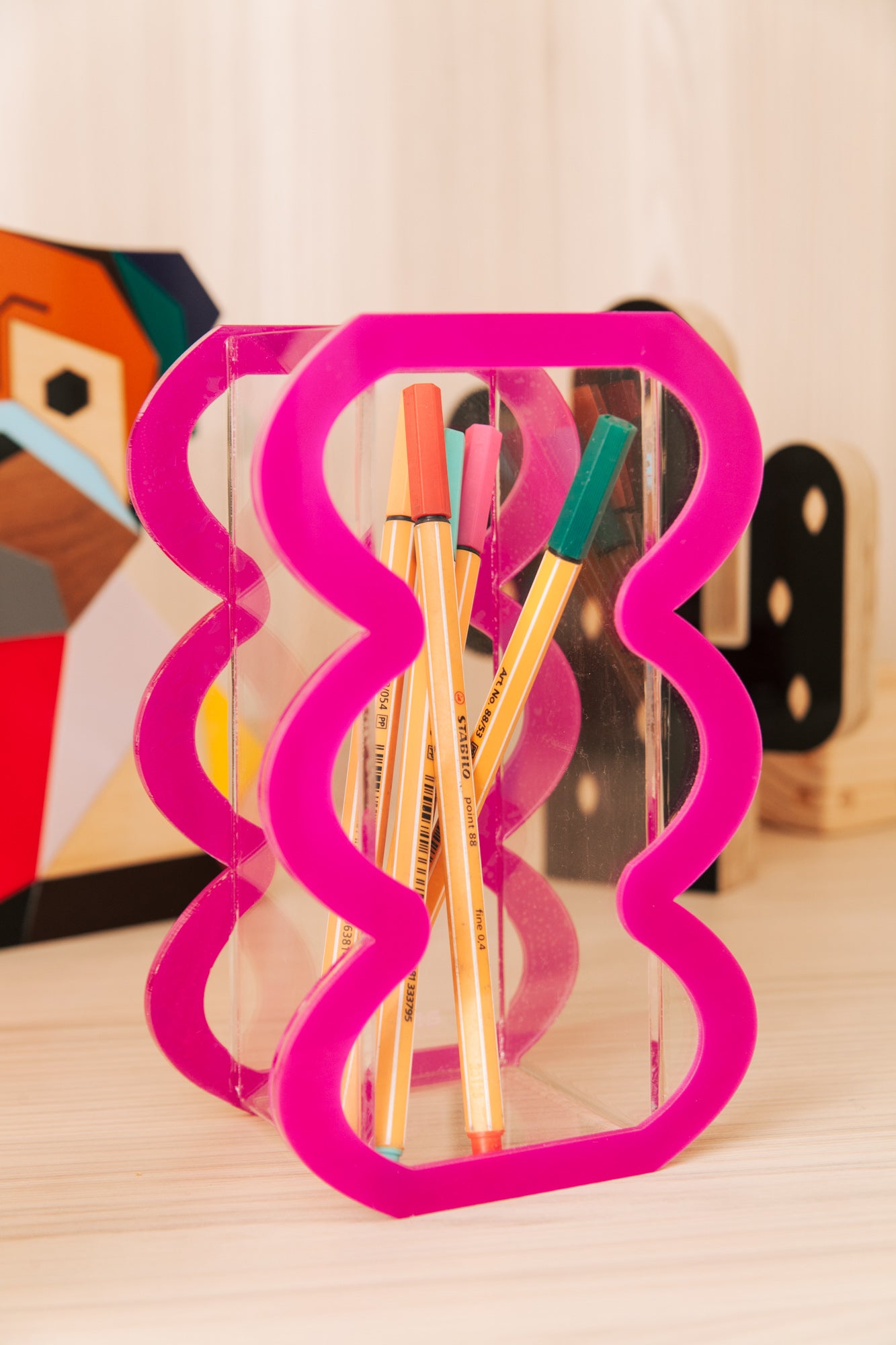 O Vaso Ondas da artminds foi pensado para fugir do tradicional e básico. Ele é feito com acrílico transparente e colagem sobreposta de acrílico colorido em formato de ondas, trazendo muito charme e estilo para a peça. Além de usador como vaso de flor, pode usar também apenas como decoração, porta lápis, porta pincéis e infinitos jeitos diferentes.