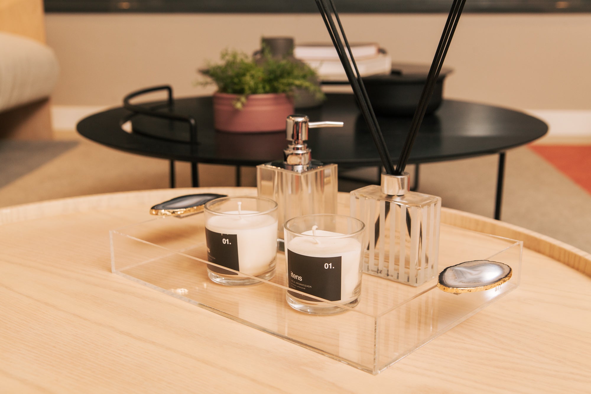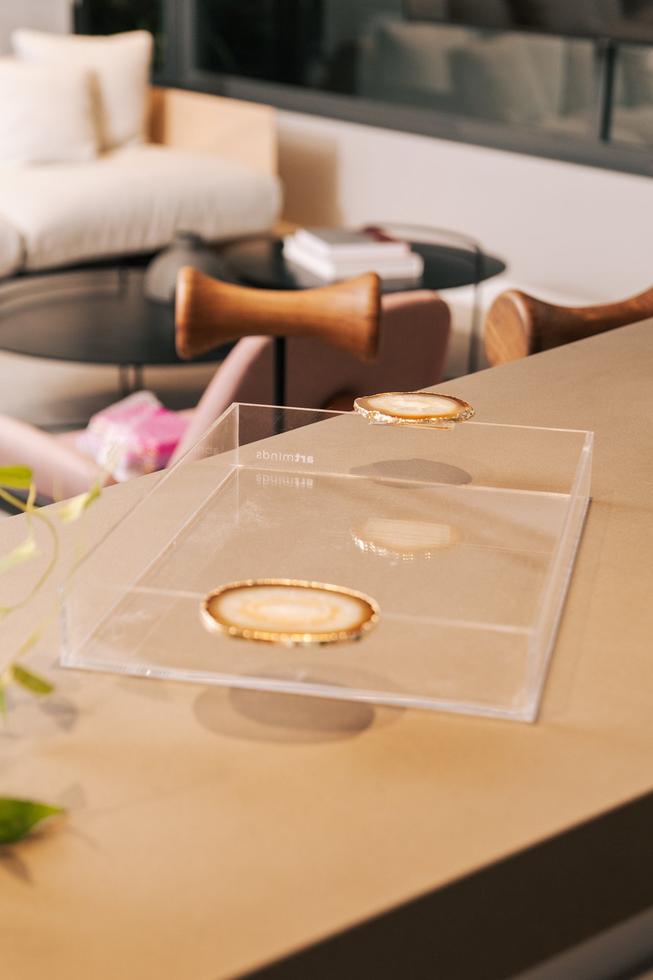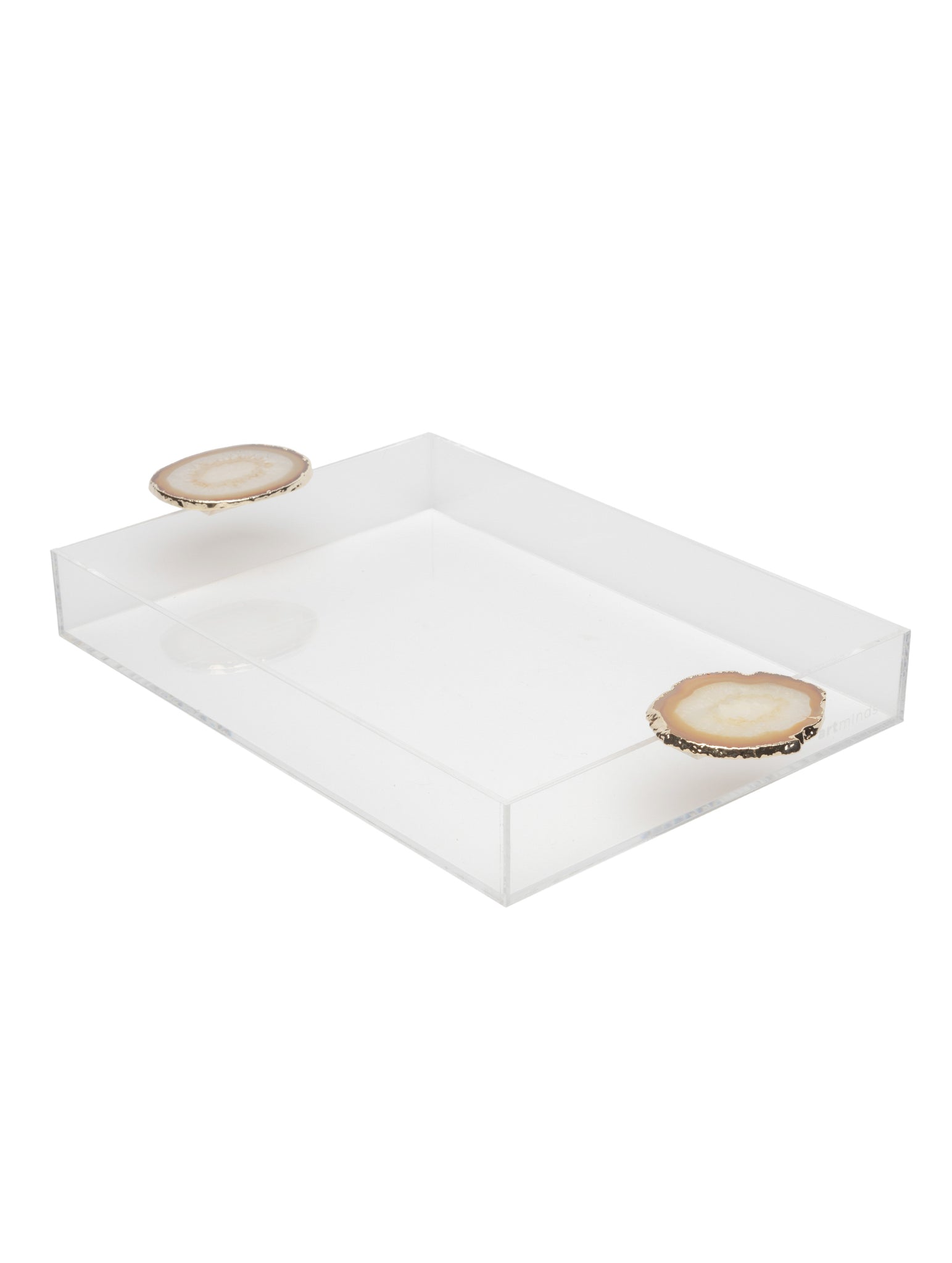 A Bandeja - Pedra Ágata da artminds foi elaborada em acrílico transparente para dar leveza ao produto e as alças com Pedra Ágata dando o toque final e charme necessário. Pode ser usada de diversas maneiras: decoração, organização entre outras infinitas formas que desejar.