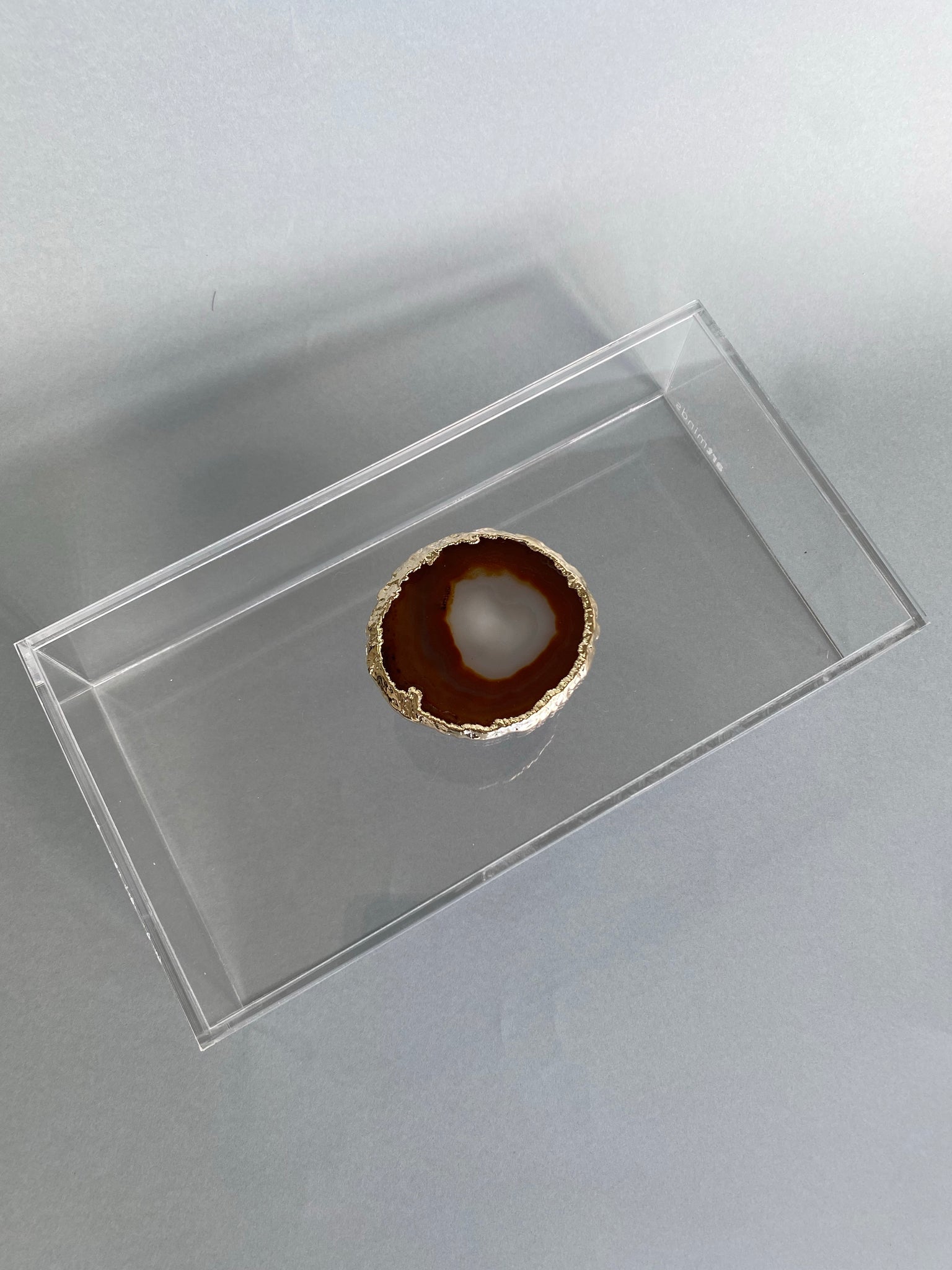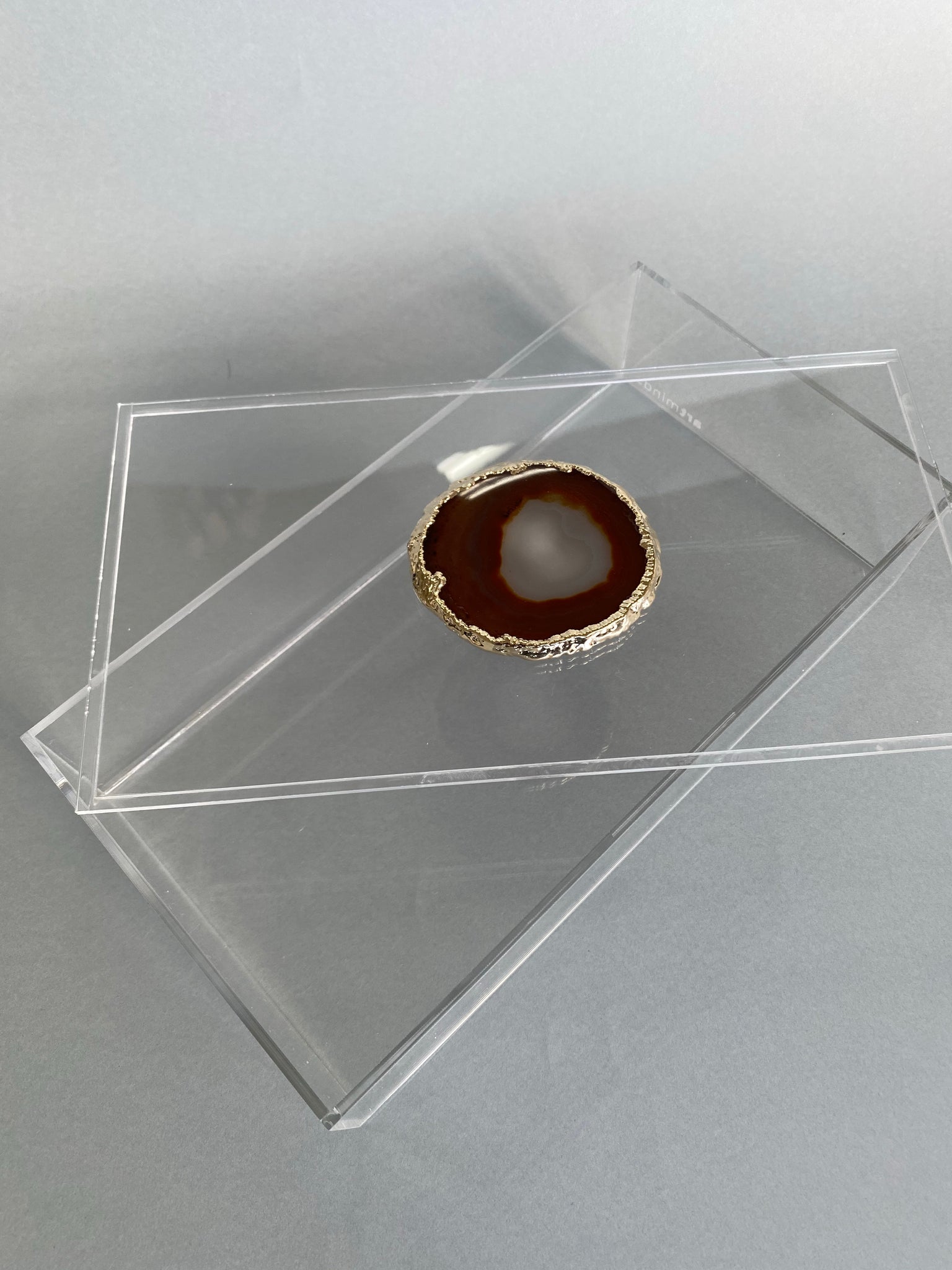 A Caixa Retangular - Pedra Ágata da artminds foi elaborada em acrílico transparente para dar leveza ao produto que tem todo seu destaque pela Pedra Ágata colada em cima da tampa, trazendo beleza e sofisticação. A caixa pode ser usada de diversas maneiras: decoração, organização entre outras infinitas formas que desejar.