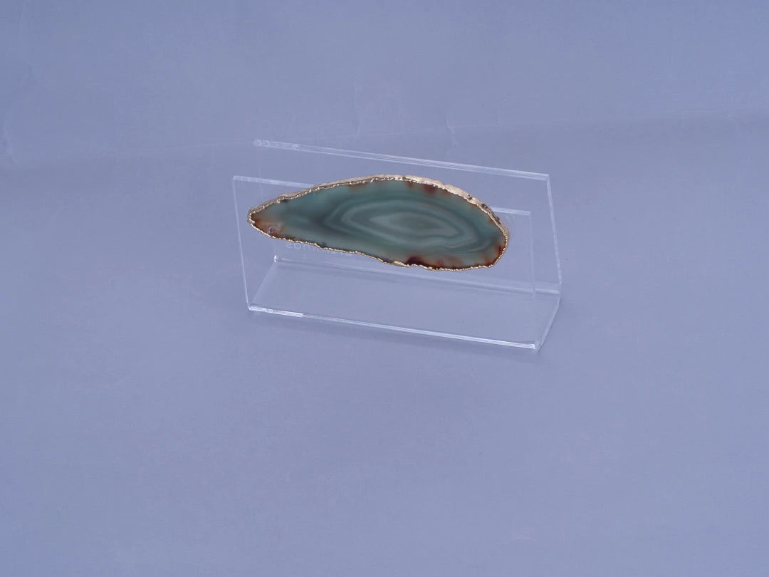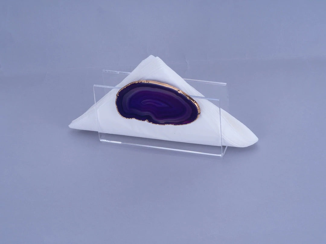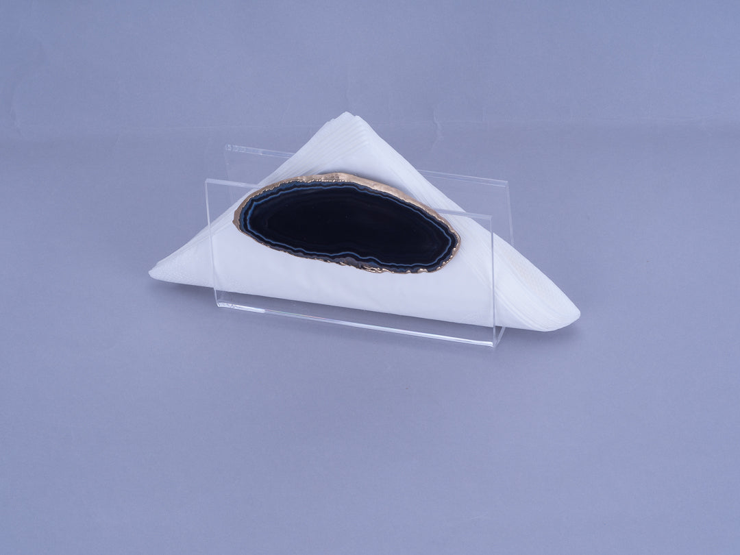 O Porta Guardanapo Dobrado - Pedra Ágata da artminds foi elaborado em acrílico transparente para dar leveza ao produto que tem todo seu destaque pela Pedra Ágata colada em cima da tampa, trazendo beleza e sofisticação. Ideal para usar na sua mesa posta para receber família e amigos e também no dia a dia pela sua praticidade.