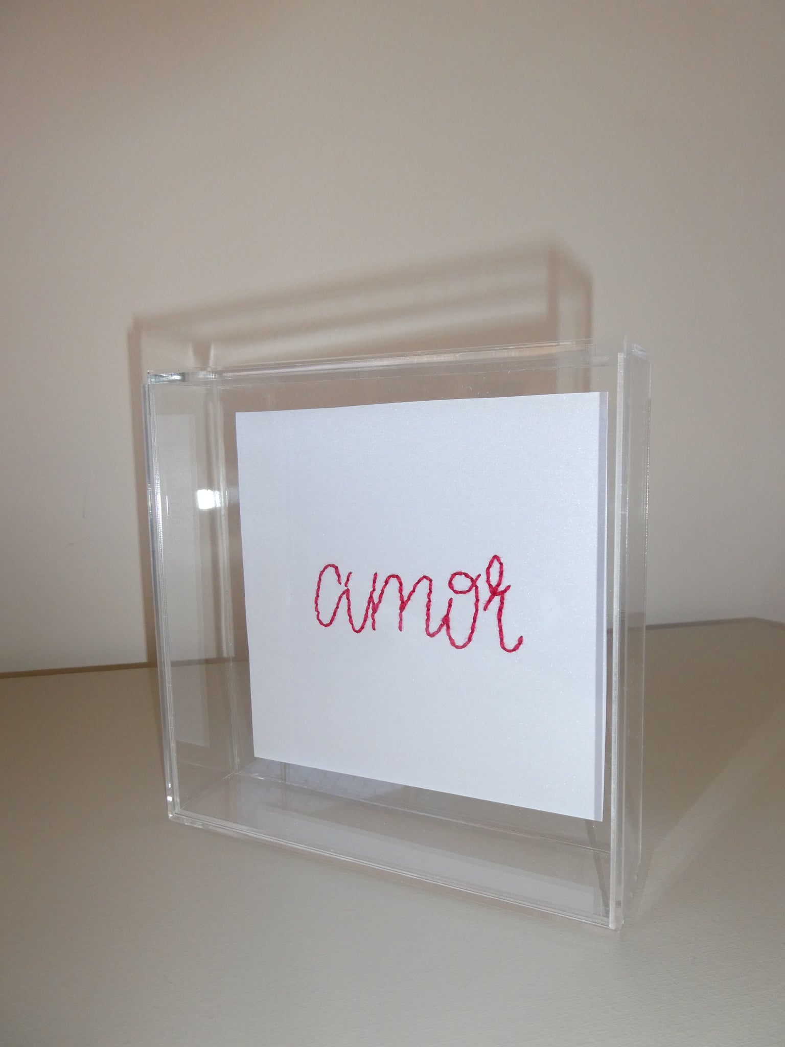 O Quadro - Amor da artminds foi criado para compor um ambiente com beleza, sofisticação e delicadeza. O quadro é todo feito em acrílico transparente com colagem interna de tecido linho bordado à mão. É uma ótima opção para presentear pessoas e famílias especiais. Fica lindo em oratórios, bancadas, parede, ambientes em que deseja abençoar e claro, onde mais sua imaginação mandar.