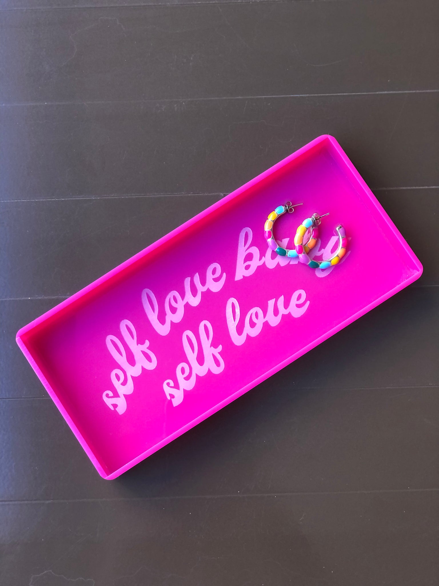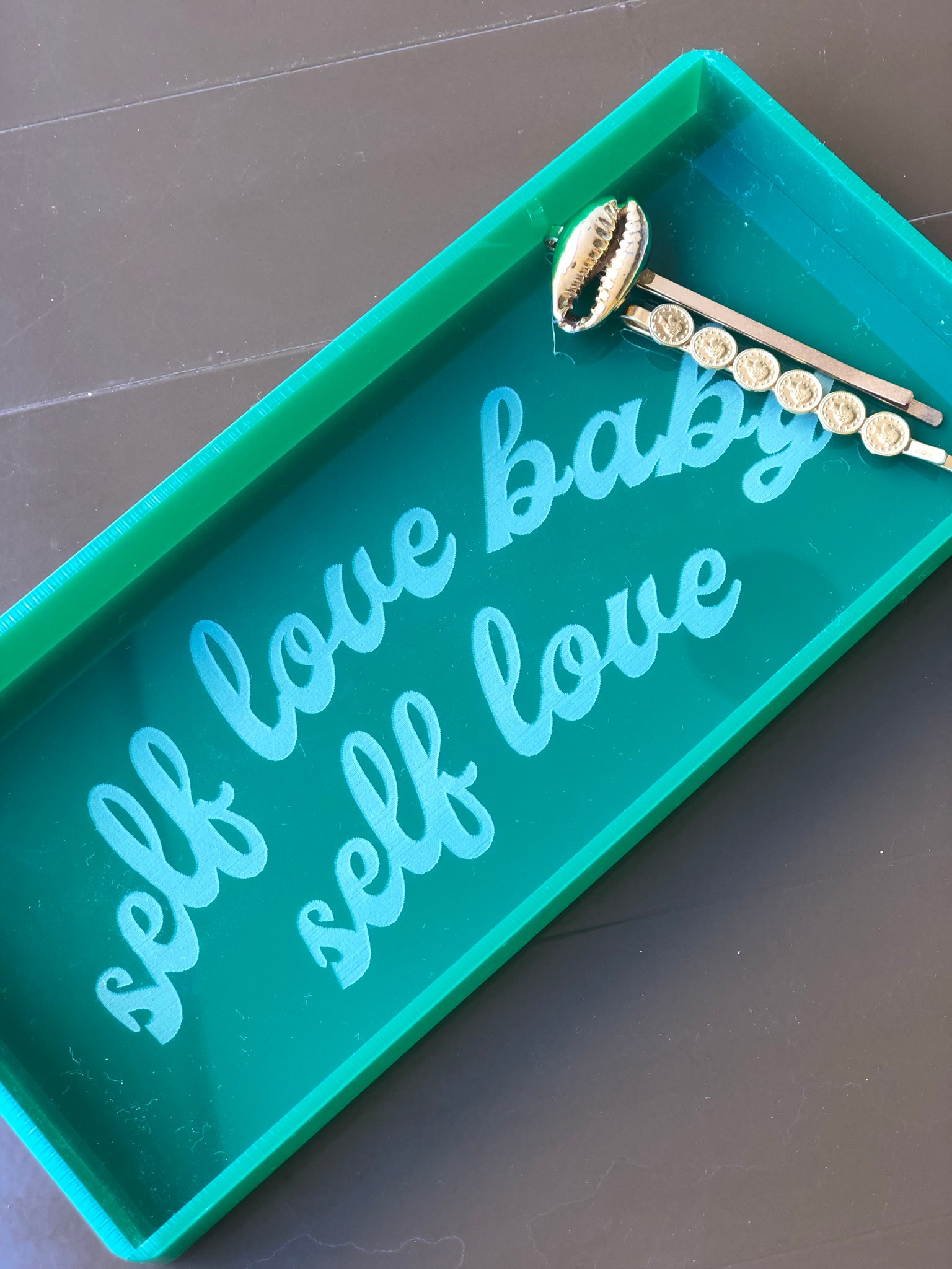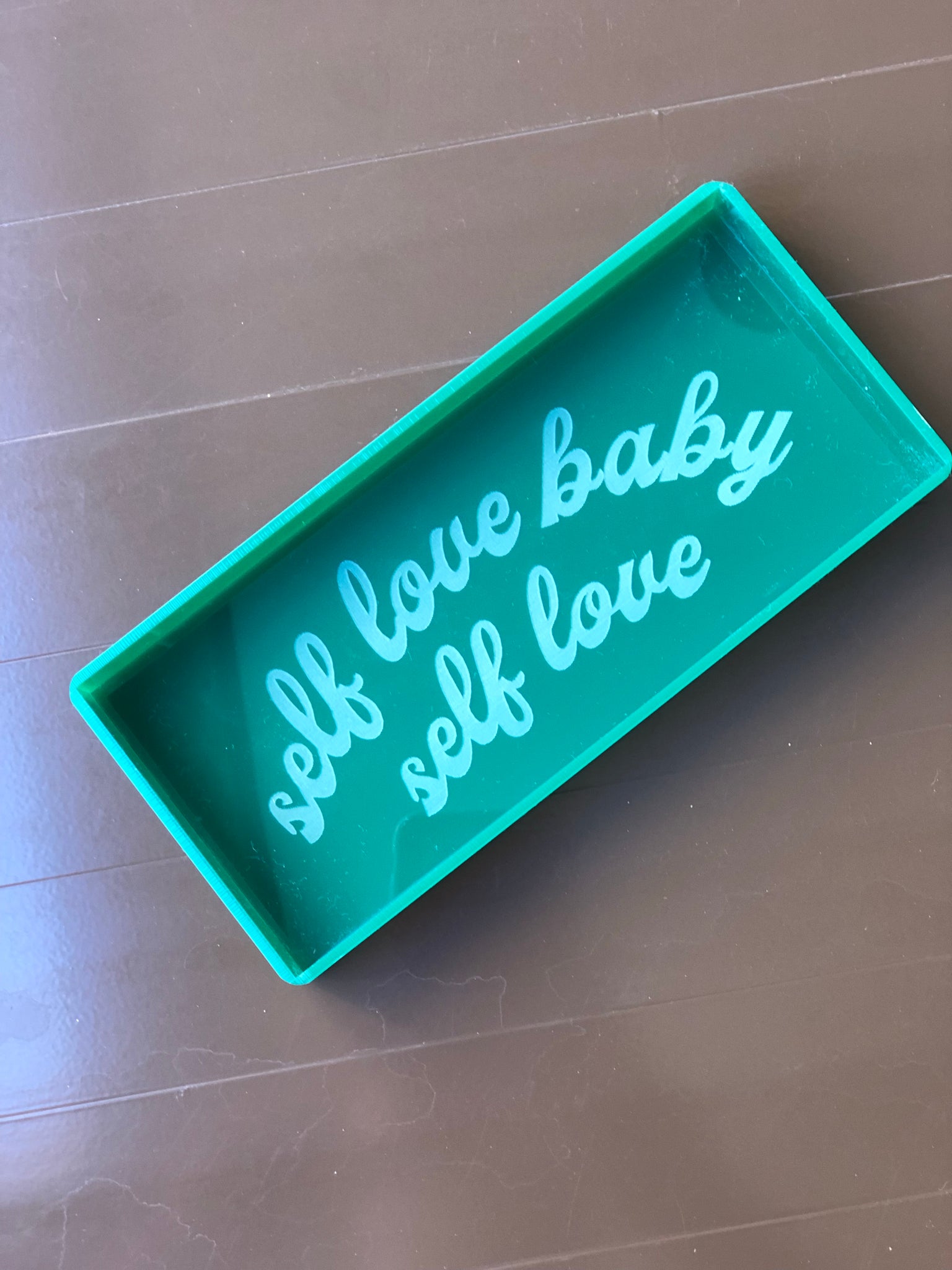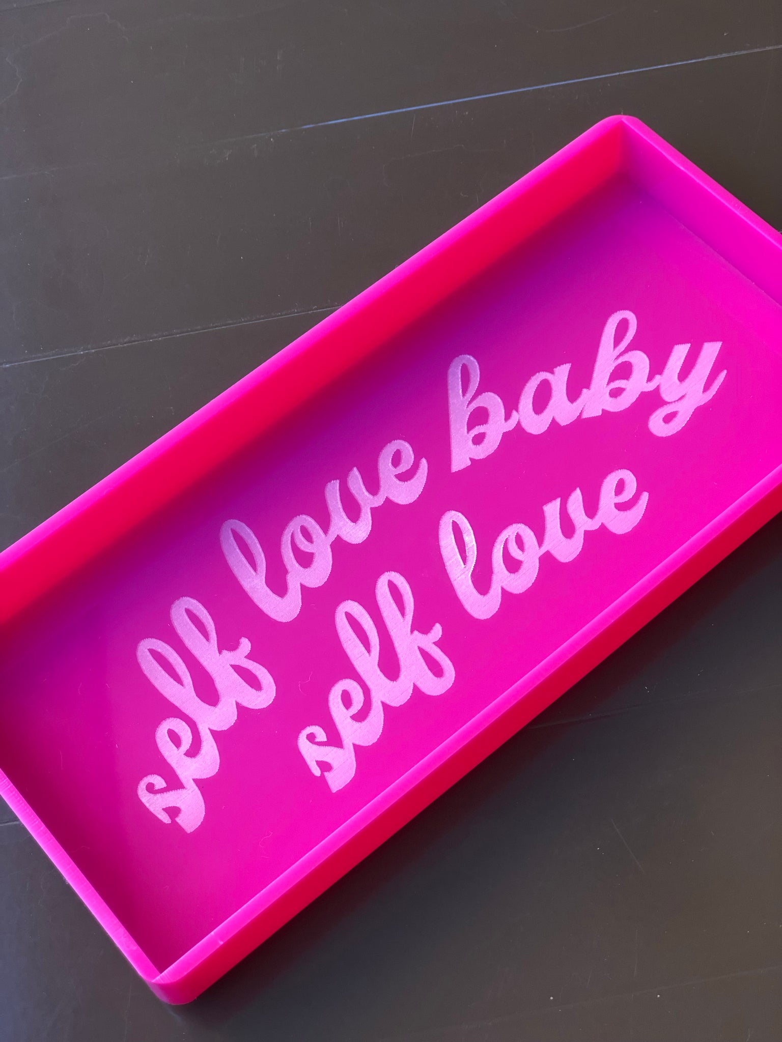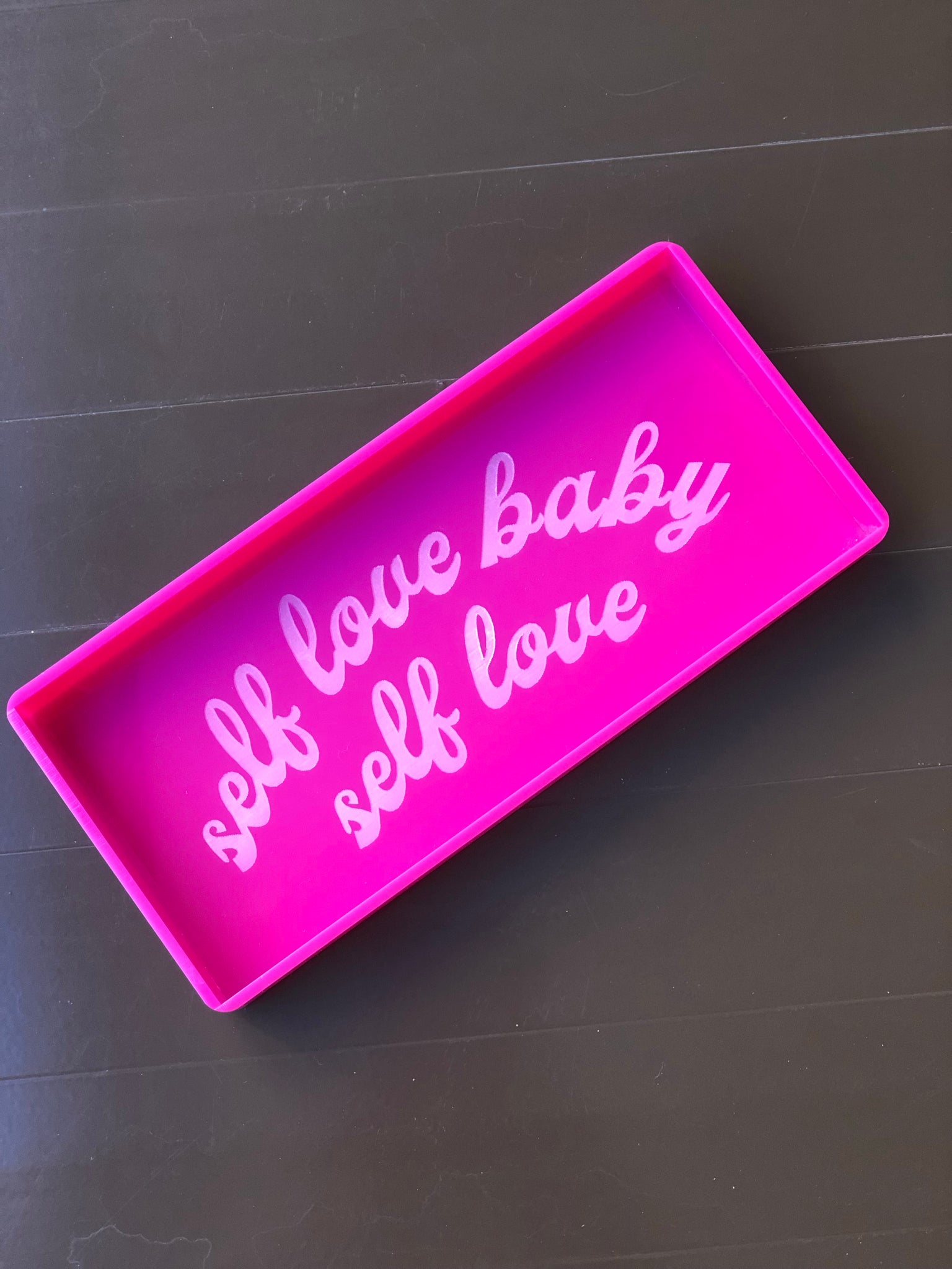 A Bandeja Color Frase - Self Love Baby da artminds foi elaborada em acrílico colorido para ser mais divertido. É uma ótima opção de presente e também para usar como porta acessórios e decoração.