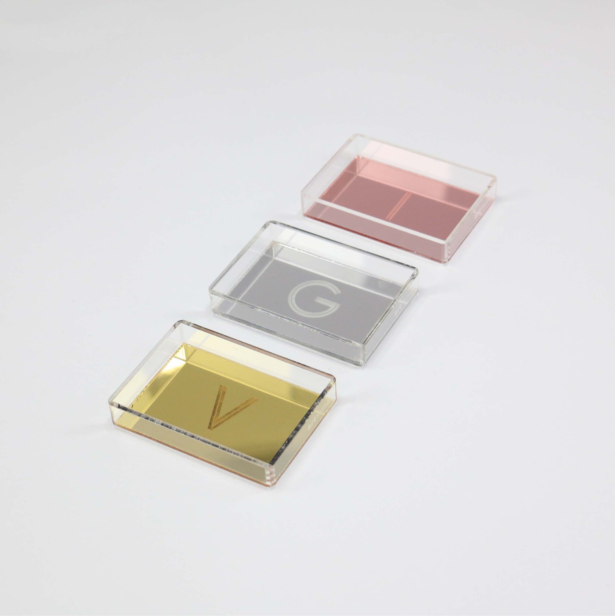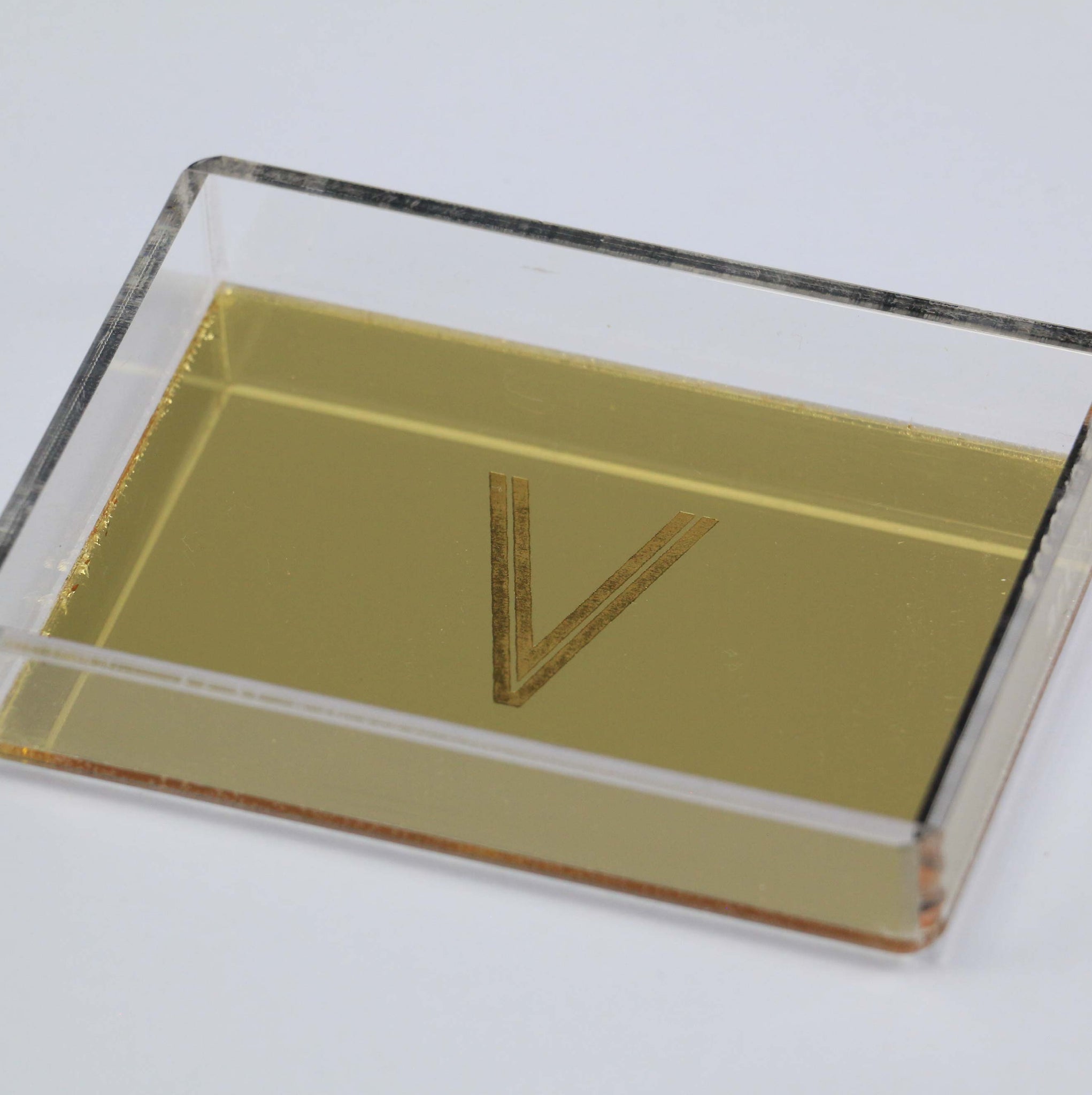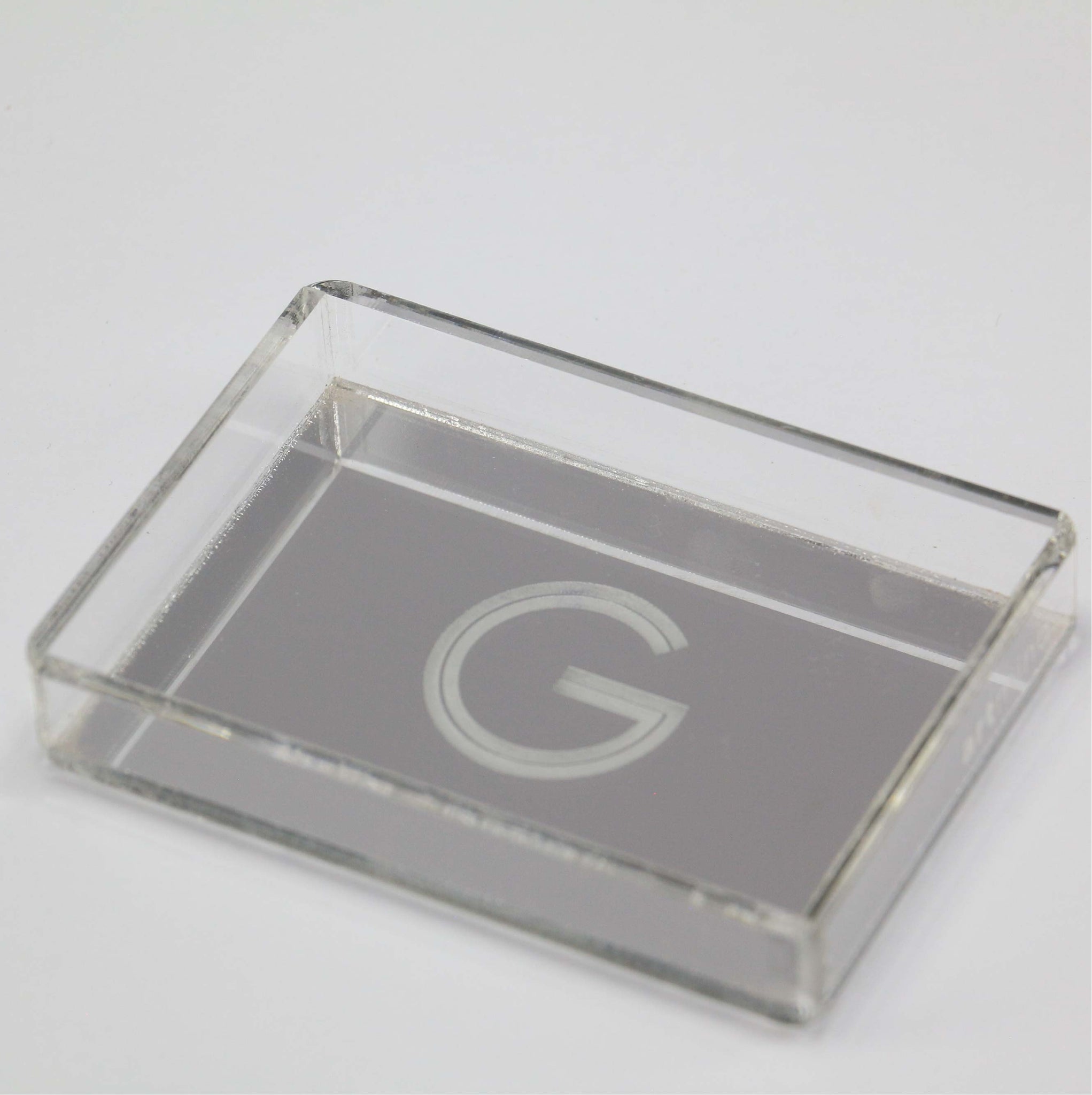 A Bandeja Espelhada da artminds foi elaborada em acrílico transparente por fora e acrílico espelhado por dentro. A inicial jateada na parte interior da um toque exclusivo e sofisticado à peça. Pode ser usada de diversas maneiras: decoração, organização entre outras infinitas formas que desejar.