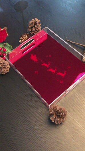 A Bandeja Natal - Trenó da artminds foi elaborada em acrílico transparente na lateral para dar leveza ao produto e o fundo colorido para dar mais alegria e estilo. A bandeja pode ser usada de diversas maneiras: decoração, organização entre outras infinitas formas que desejar para deixar essa data ainda mais especial.
