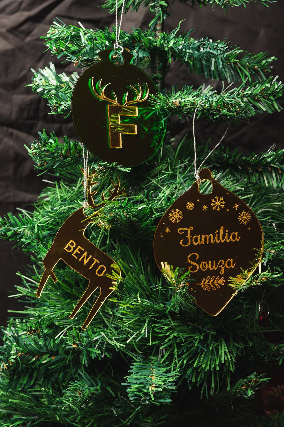 A Bola de Natal - Incial Rena da artminds foi criada para personalizar essa data tão especial. Ela pode ser usada na árvore, decoração, marcar lugar na mesa e para presentear também.