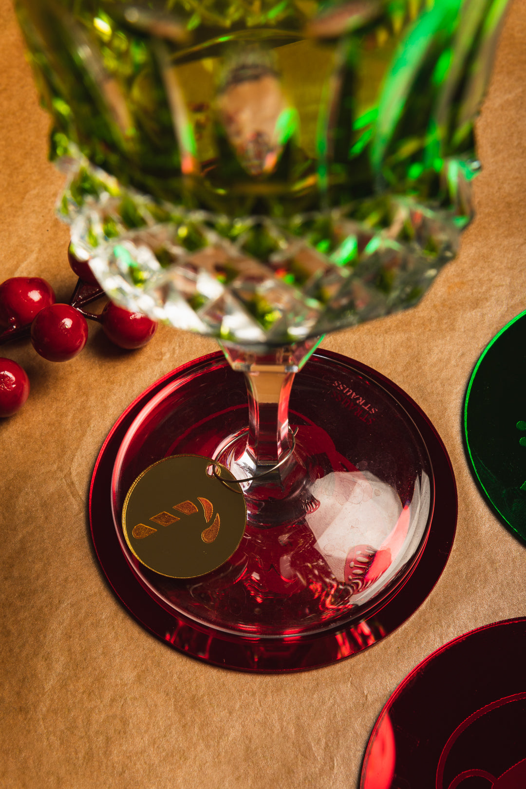 Os Porta Copos Natal da artminds foram criados para compor sua mesa e deixar essa data ainda mais especial. O kit contém 6 unidades, sendo 3 no acrílico espelhado vermelho com desenho de Papai Noel e 3 no acrílico espelhado com verde com desenho de flores natalinas.