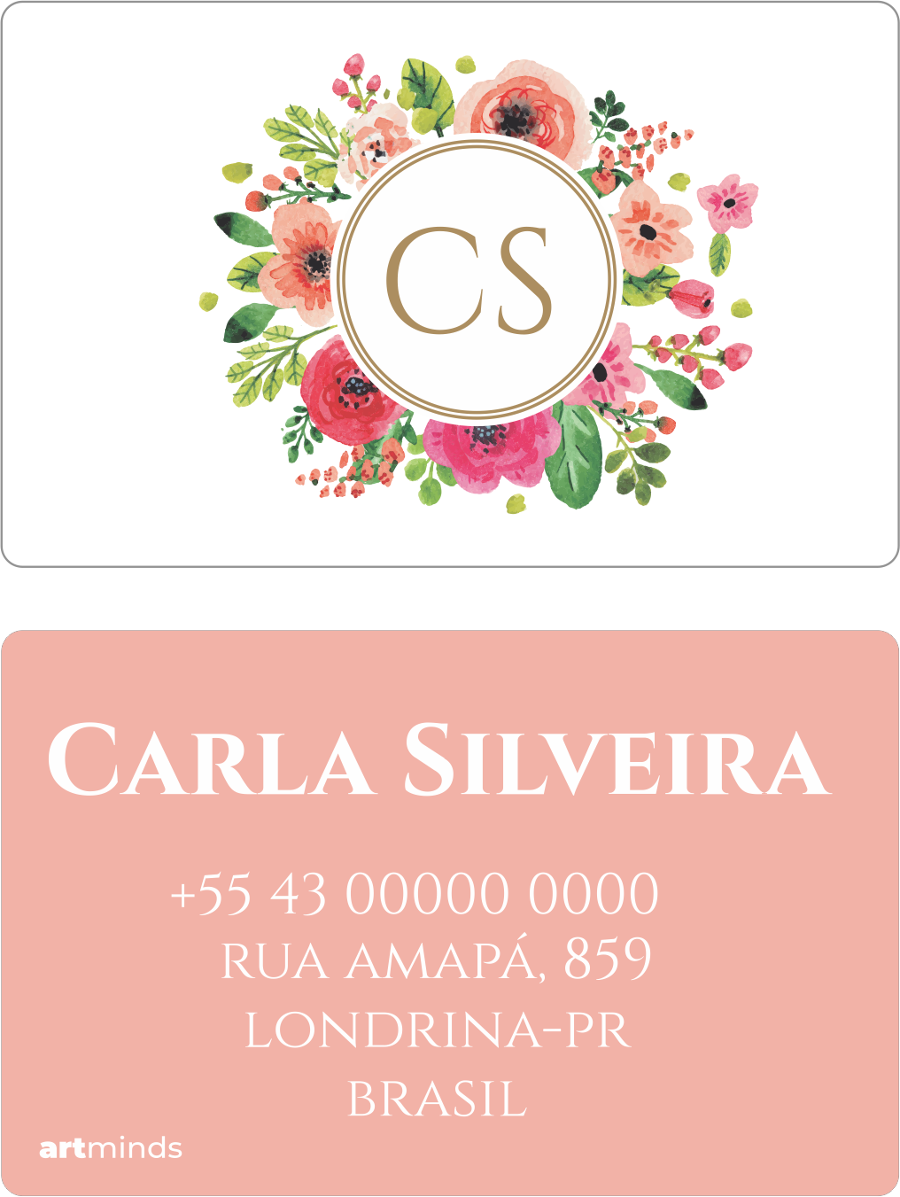 • Verso: nome, telefone, e-mail ou endereço, cidade e país (escolha as informações importantes para você, o uso de todas não é obrigatório)
