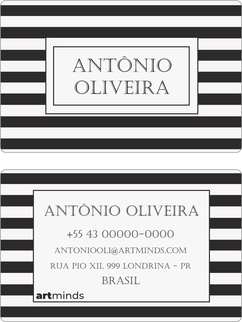 • Verso: nome, telefone, e-mail ou endereço, cidade e país (escolha as informações importantes para você, o uso de todas não é obrigatório)