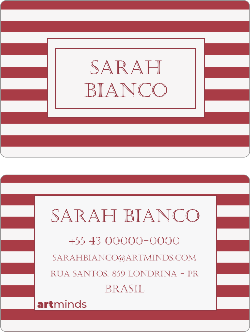 • Verso: nome, telefone, e-mail ou endereço, cidade e país (escolha as informações importantes para você, o uso de todas não é obrigatório)